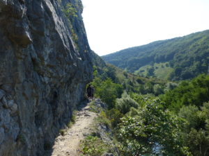 No ale nevadí, v programu psali, že tuhle avantýru „… zvládne každý“, takže musíme i my. Jdeme podél řeky Nery, což je opravdu nádherné prostředí. O náročnosti cesty se rozpovídám zítra, pro teď stačí informace, že se šlo doslova cestou necestou. Je tu dosti skalnatý terén, skály samozřejmě zasahují až k řece, takže cesta je mnohdy vykutána přímo do nich, jsou tu tunely, kudy se člověk musí protáhnout. No a při tom může pozorovat lesy protkané skalami na druhé straně a meandry nepříliš hluboké řeky s jejími peřejemi. Opravdu nádhera! Vzhledem k náročnosti terénu a vpravdě sportovnímu tempu, které průvodce Honza nasadil, jsme se sice příliš kochat nemohli, což je veliká škoda, ale i tak jsme se snažili tu krásu pojmout.