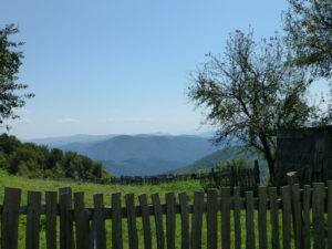 Ten „kousek“ do Rovenska ve skutečnosti znamenal osm kilometrů do kopce a „vyběhnout“ znamenalo vyhýbat se cestě a razit si to pár metrů vedle houštinami, ostružiním, proplétat se spadanými větvemi a co chvíli uklouznout v prudkém svahu. Při tom všem zdolat asi šest set výškových metrů. Než jsme došli, byli jsme všichni hotoví, s podrápanýma nohama a nechápali jsme, proč jsme nemohli jít po té široké polní cestě, na kterou jsme z naší stezky chvílemi i viděli. Podle Honzy byla prý kus dál neschůdná, ale místní se nad tím podivovali, že prý to vůbec není pravda. Tak asi abychom si to pochodování řádně užili. Když jsme tedy konečně dorazili do Rovenska, naší první skutečné české vesnice v Banátu, popadali jsme jak hrušky na návsi a byli vděční za odpočinek. Místní krámek byl naštěstí otevřený, tak jsme konečně mohli dokoupit zásoby vody a jídla.