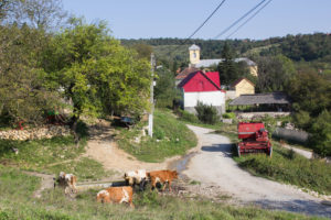 Mně osobně větrníky nijak nevadily, naopak zajímavým způsobem kořenily horizont, ale tak já asi nejsem většinový návštěvník Banátu. Polnaté kopečky, sem tam strom, sem tam kus louky, bylo to tu vyloženě nádherné. Už jsem zmínil, že se tu moc není kam schovat před sluníčkem a šli jsme tímto rájem ještě další dvě hodiny než jsme konečně dorazili do hospody U Pepsiho ve Svaté Heleně. Poznali jsme, jak blízko může mít ráj k výhni pekelné. Při příchodu jsme na cestě potkali traktory s valníky a místními lidmi, jak se vracejí z pole. Jistě makali víc než my, ale vypadali, že se snad ani nespotili. Jak to dělají?