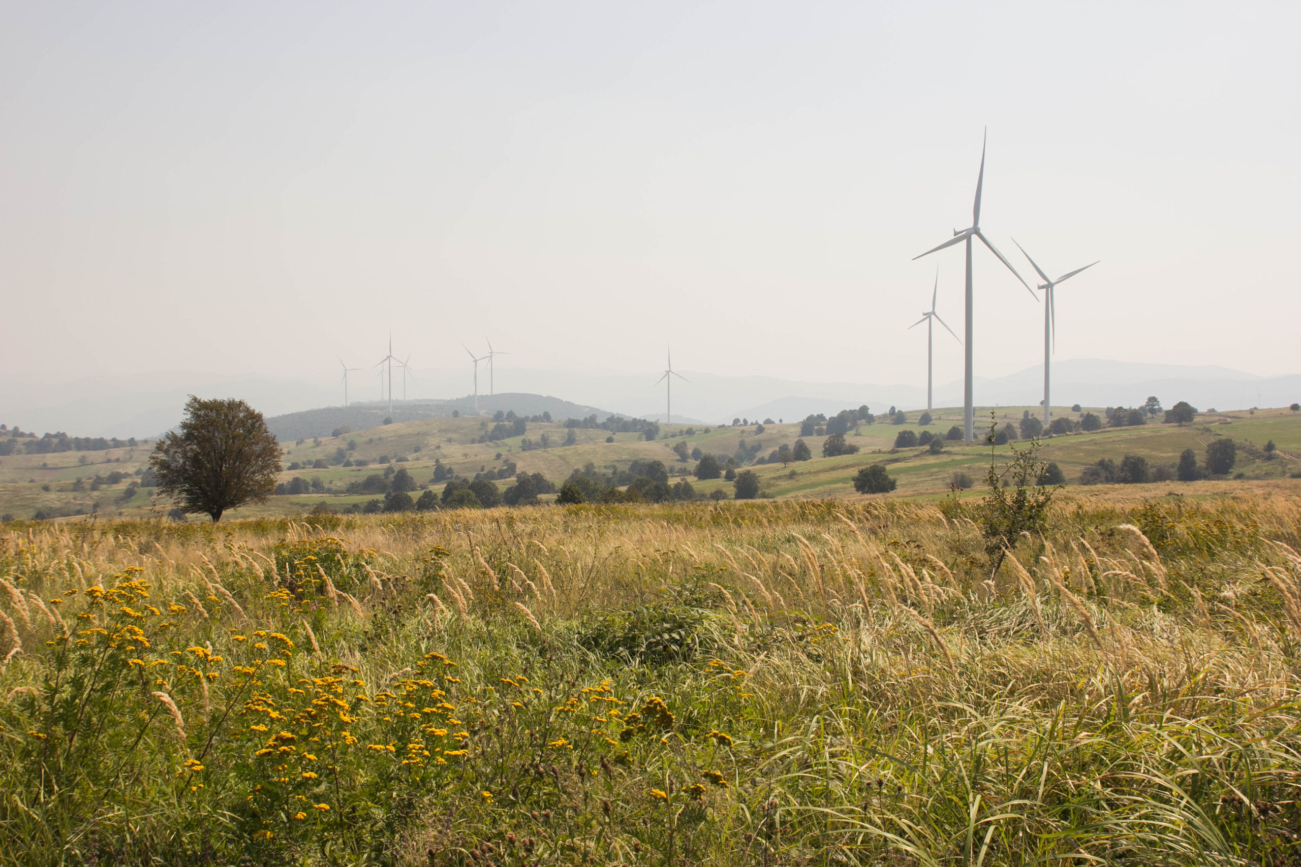 Včetně zacházky do Turecké díry nám cesta zabrala celé dopoledne, ba i kousek odpoledne a po jedné hodině odpolední jsme se konečně začali blížit k Svaté Heleně. Poslední kilometry se jdou vyloženě mezi poli, kde se sice majestátně tyčí větrné elektrárny, ale není se kam schovat před sluníčkem, takže ta poslední míle je dosti vysilující. Mimochodem zmíněné větrníky jsou pro místní trnem v oku. Energetická společnost prý levně vykoupila pozemky od starších lidí, kteří si vše nedovedli spočítat, a provozem elektráren údajně narušuje turistickou atraktivnost kraje.